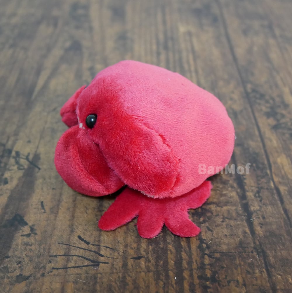 スベスベマンジュウガニをモデルにしたぬいぐるみです。