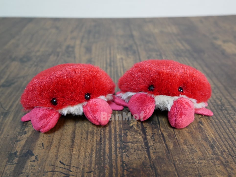 スベスベマンジュウガニをモデルにしたぬいぐるみです。